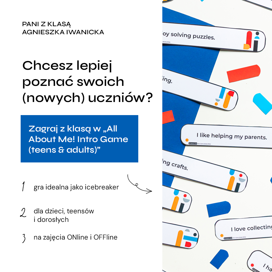 Poznaj swoich uczniów dzięki grze „All about me! Intro Game” Idealna na pierwsze lekcje, zajęcia integracyjne lub jako energiczny przerywnik w dowolnym momencie lekcji.