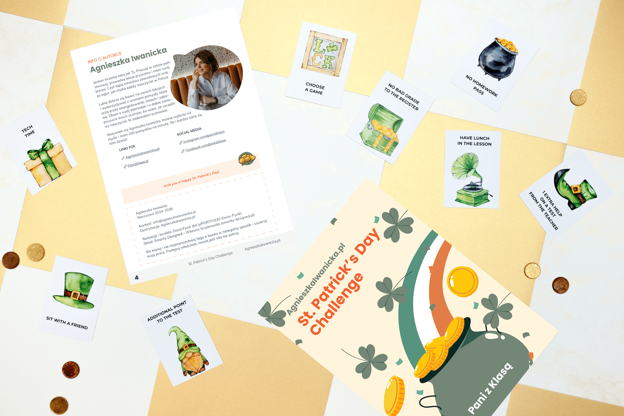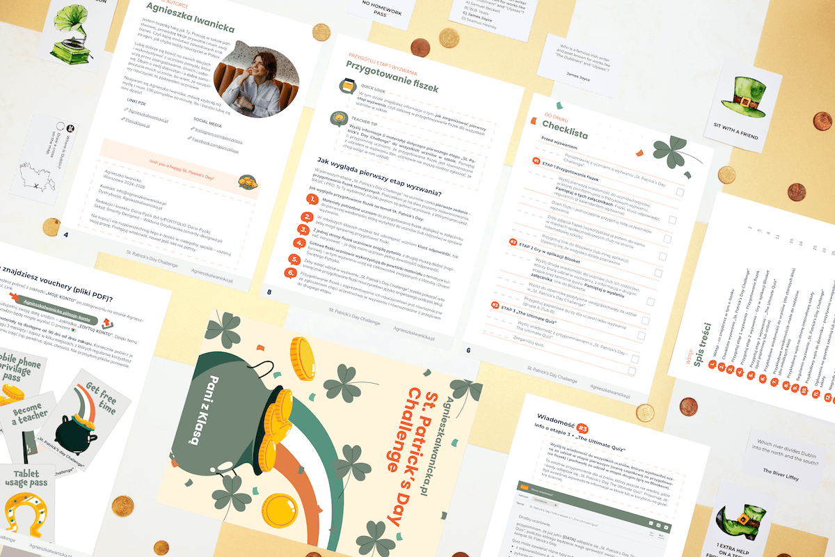 Organizacja fascynującego wydarzenia w szkole jeszcze nigdy nie była tak prosta! Zestaw “St. Patrick’s Day Challenge” to gotowe rozwiązania, które nie tylko zaoszczędzą Twój czas, ale także uczynią naukę niezapomnianą przygodą!
