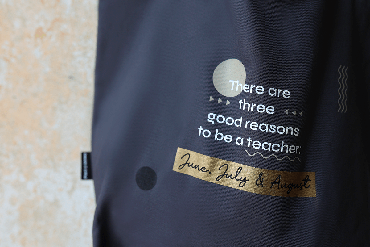 Wystarczy, że spojrzysz na nadrukowany napis: „There are 3 reasons to be a teacher: June, July & August”. Taki manifest z pewnością przyciągnie uwagę koleżanek i kolegów z grona pedagogicznego. No i te +100 punktów do zajefajności u uczniów😉